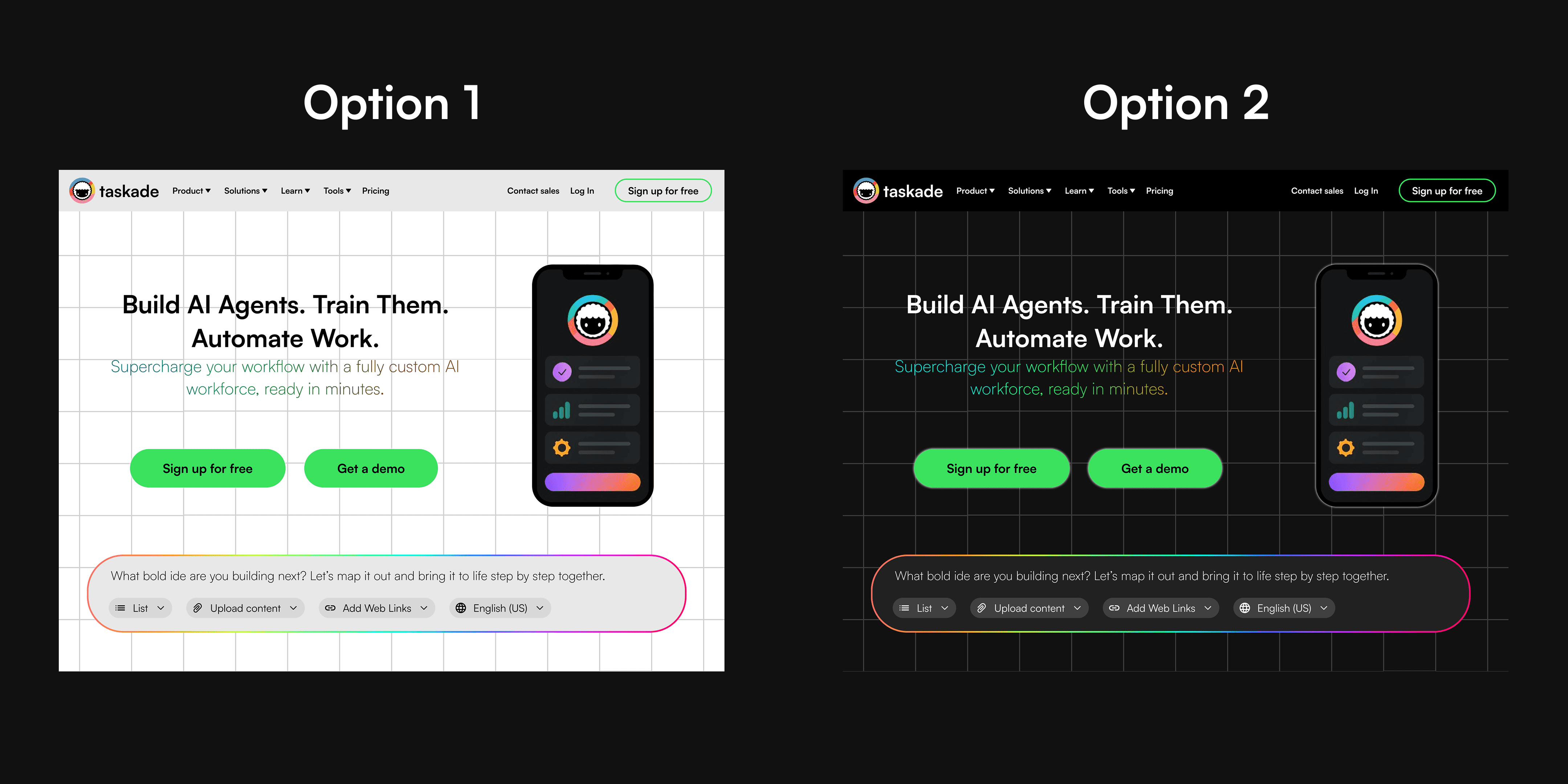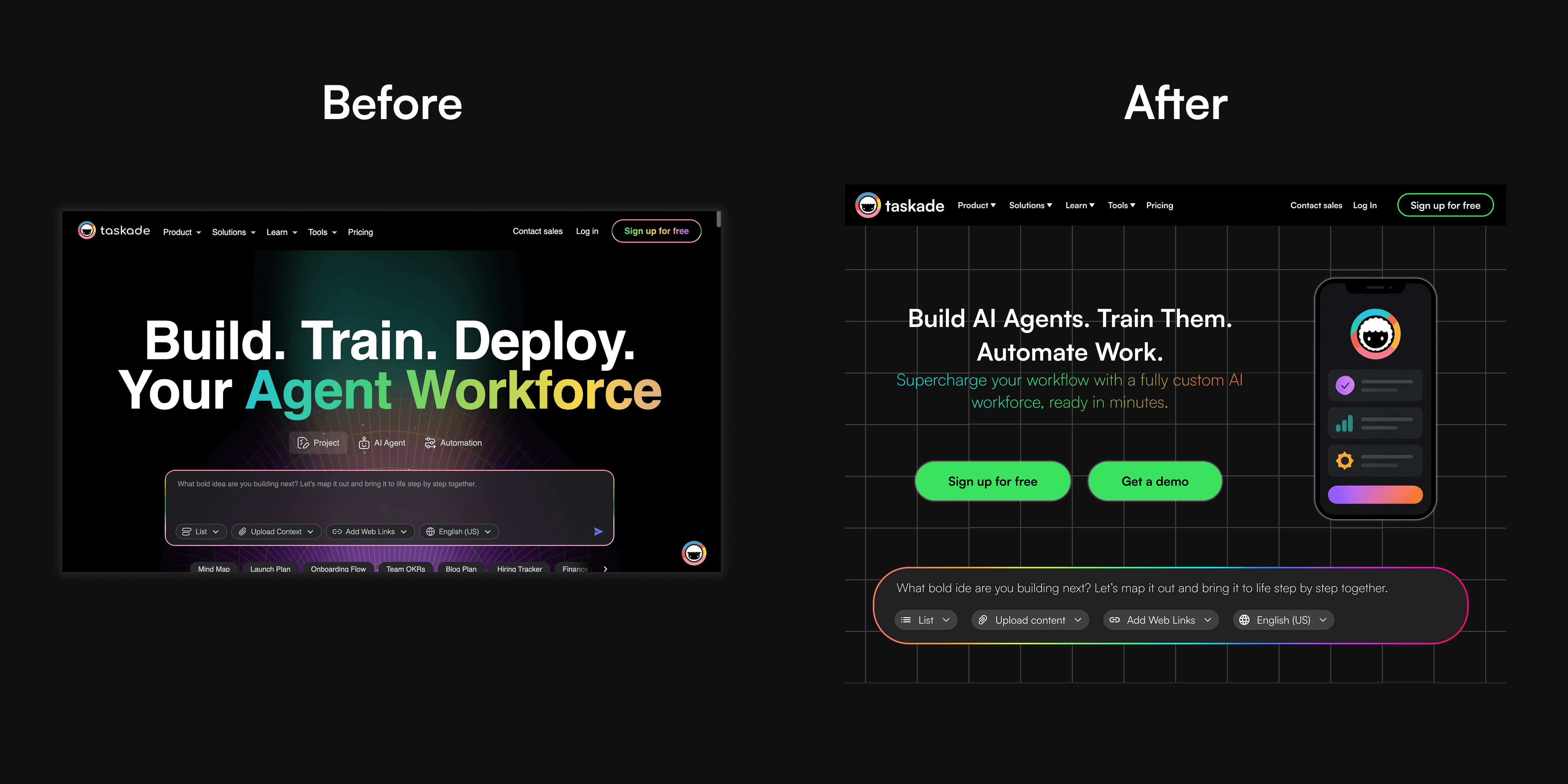 Redesign of a productivity SaaS homepage for a modern AI-first experience. The focus was on streamlining the message, enhancing visual hierarchy, and elevating the tech aesthetic to attract startups and teams adopting automation.